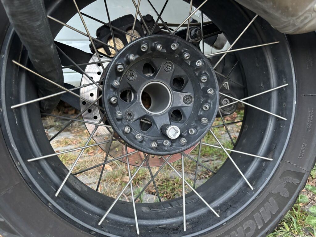Eines der wichtigsten Werkzeuge das ich auf meiner 1250er GS mitführe ist wohl die Torx Nuss um das Hinterrad ausbauen zu können. Vereinfacht es bei einem Platten nur das Hinterrad zur Reparatur zu bringen und nicht das ganze Motorrad transportieren zu müssen.